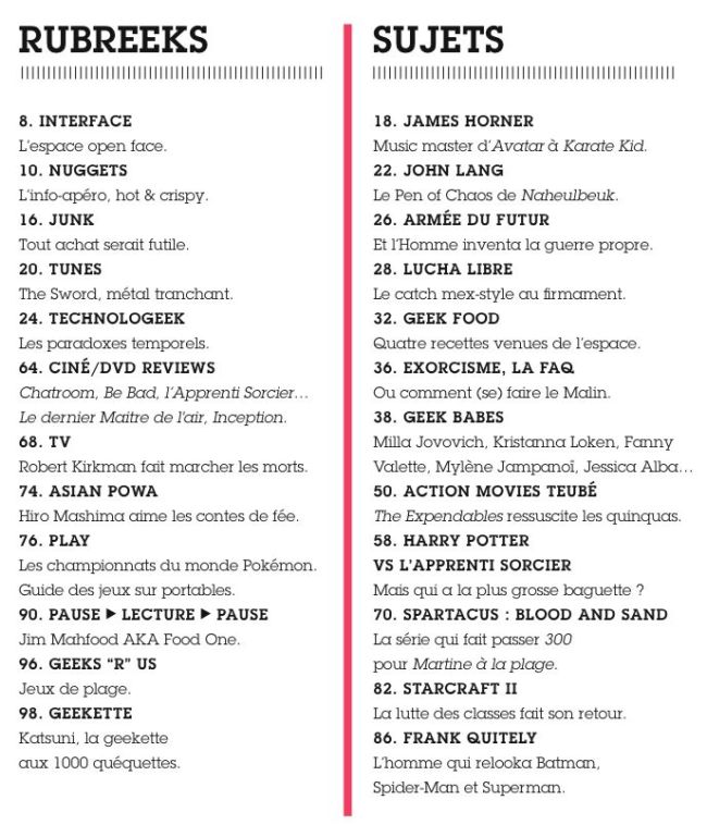 Le magazine le plus " Geek " de l’hexagone, consacré aux séries TV, au cinéma, aux jeux vidéo, à la Bd, la musique , à toute la culture geek...est disponible en kiosque, avec notamment un sujet sur Spartacus écrit par Romain Nigita, chef de projet au sein de 8 Art City (l’agence spécialisée dans le domaine des séries ) qui collabore aussi à Mad Movies.
