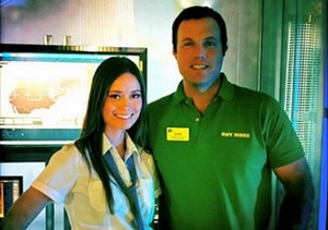 « Le geek qui est caché en moi, qui est aussi le geek visible, était très excité à l’idée de pouvoir avoir Summer dans la série. En tant que Greta, elle n’est pas seulement bonne et effrayante, mais elle est aussi très drôle. On essaie de voir jusqu’à quel point les acteurs d’Hollywood sont prêts à enfiler le T-Shirt vert de Buy More ou la chemise noire et blanche des Nerd Herd. »