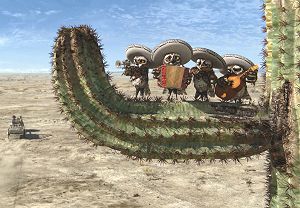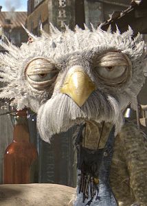 C’est venu pendant qu’on travaillait sur le storyboard. On avait l’impression qu’il était importait que Rango rencontre sa version de l’icône du héros de western. S’il tombait par hasard sur Spirit of the West, comment cela se passerait-il ? Pour une poignée de dollars sera toujours une parodie et Timothy Olyphant a une telle voix. Ça semblait logique que Rango fasse cette rencontre. Et puis on est de grands fans de l’absurde.