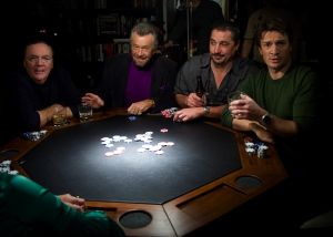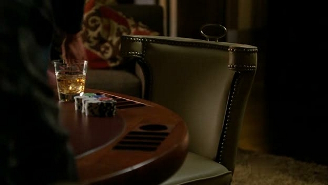 Petit détail : son verre et ses jetons de poker sont en place.