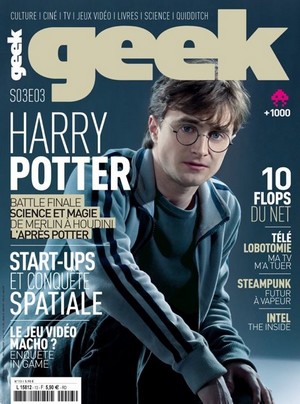 Voici le nouveau Geek magazine, le numéro d’été, avec Harry Potter en couverture " Plus que le dernier opus cinématographique des aventures de Mr. Potter, nous nous sommes attachés à une réflexion sur la place de la magie dans un monde ultra-techonologique.Que peut encore apporter la magie dans un monde où tout semble possible à plus ou moins long terme ? Et si la science était redevenue la magie, comme à l’époque de l’alchimiste ? Mais que les Potterophiles se rassurent, nous les avons pas oubliés, car au-delà d’une preview sur le “film de guerre” que sera la partie 2 des Reliques de la mort comme nous l’affirme Daniel Radcliffe, nous avons également fait en sorte qu’il y ait une vie après Harry, avec quelques tips de lecture et d’autres magiciens ou sorciers à découvrir. "