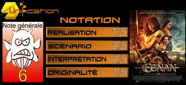 Au final, une production des frères Hadida qui se veut ambitieuse mais qui est ratée à bien trop de niveaux (on notera cependant qu’il y a rien de moins que 8 producteurs sur ce film, et 3 producteurs exécutif, ce qui pourrait expliquer pour beaucoup la sensation d’inégalité d’une scène à une autre dans Conan). On sent qu’il y avait une volonté de bien faire, mais il manquait ici des moyens sinon financiers, sinon humains. Et les clichés ou les références à d’autres films célèbres (quasi plan par plan, image par image) ne remplacent pas un vrai talent en montage (lequel permet souvent de compenser des erreurs lors du tournage). Un film, donc, qui se place immédiatement au rang de gros nanar coûteux.