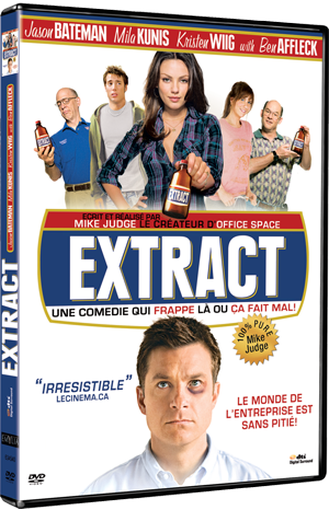 Retrouvez, depuis le 18 octobre chez Emylia, Extract, comédie de Mike Judge avec Jason Bateman, Ben Affleck, Mila Kunis, Mila Kunis... En DVD et combo DVD/Blu-ray.