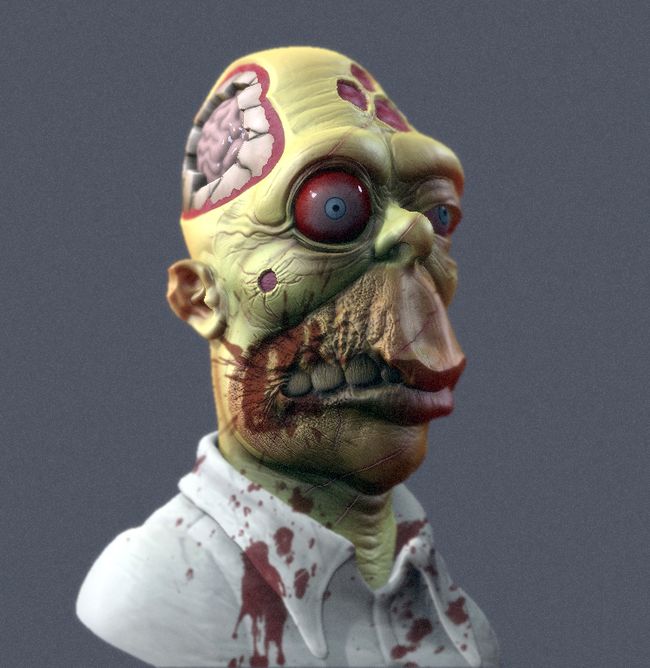 Juste pour le fun, cette métamorphose incroyable d’Homer Simpson en zombie est l’œuvre de TranzorZ3D. Après et avant :