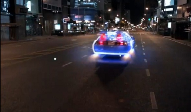 Cerise sur le big mac, on retrouve également la célèbre Delorean du film … on ne saura sans doute jamais si c’est la vraie ou une réplique mais elle clignote toujours autant quand elle accélère.