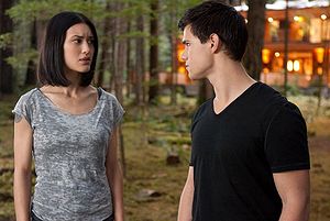 L’autre bonne surprise du long métrage de Bill Condon est la télépathie entre loups qui avait été honteusement ignorée dans Hésitation. Même si la majorité des scènes avec les loups sont maîtrisées d’autres sont maladroites (l’exemple le plus flagrant est Jacob s’opposant à Sam au bord de la rivière). Mais grâce à Leah, Jacob parvient à surmonter son désespoir de ne jamais pouvoir vivre avec Bella car elle comprend mieux que personne par quoi passe Jacob, il se montre également plus malin que Sam.