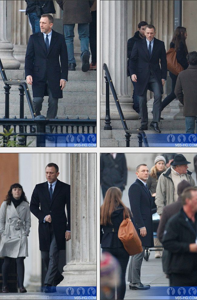Le site MI6 vient de révéler de nouvelles photos de Craig, toujours barbu, mais dans ses habits de Tom Ford sur les marches de ce qui semble être la National Gallery à Trafalgar Square. Il s’était écoulé dix jours depuis le dernier tournage en extérieur. Entretemps, l’équipe avait continué de travailler à Pinewood Studios.