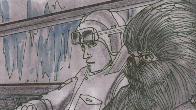 La bataille de Hoth sur la planète glacée lors de Star Wars Episode V - L’Empire contre-attaque est une des séquence d’action favorite des fans avec un rythme soutenu dû à un montage énergique qui donne une puissance inédite au combat des Walkers impériaux. Le storyboard inédit proposé ici provient d’un jeune artiste talentueux travaillant chez Lucas dans les années 70 : Joe Johnston, le même qui réalisera 30 ans plus tard Captain America. Des dessins de Nilo Rodis-Jamero se retrouvent aussi dans ce storyboard.