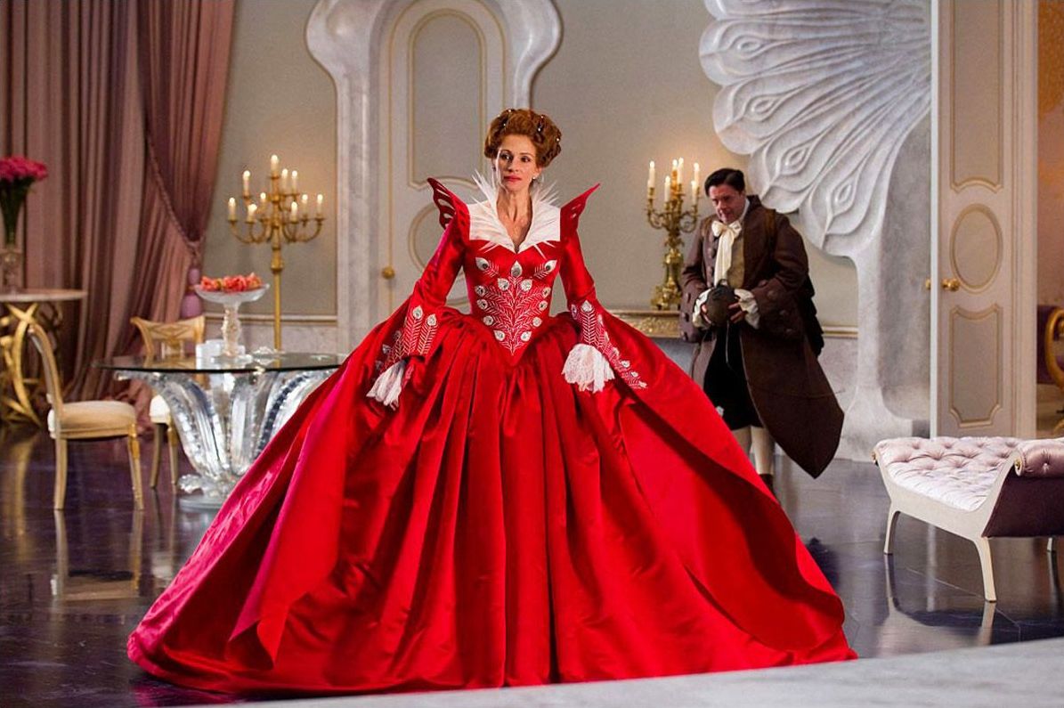 La Reine, enfin, débute le récit, ce qui aurait pu être intéressant, mais on ne se contente pas ici de tout voir par les yeux de Julia Roberts, ou même de son reflet rajeuni du miroir magique, qui est d’ailleurs l’un des rares éléments de véritable sorcellerie dont fera jamais preuve l’horrible souveraine.