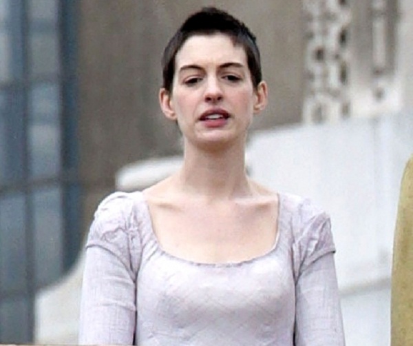 Hathaway a en effet coupé une bonne partie de ses cheveux pour jouer l’ouvrière d’usine Fantine dans Les Misérables, l’adaptation de Tom Hooper. Nous la découvrons aux côtés de Hugh Jackman qui joue le rôle de Jean Valjean.