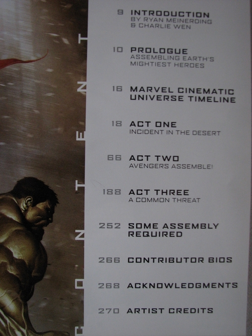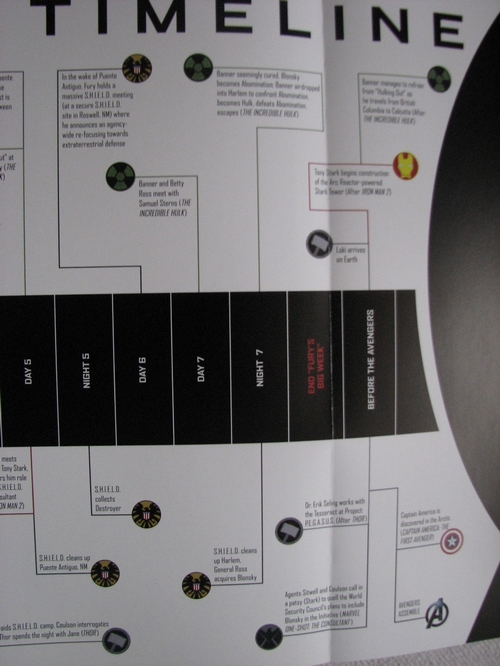 En bonus, au début du livre, une grande frise qui reprend les évènements des films Marvel précédents (Thor, Iron Man 1 & 2, L’Incroyable Hulk...).