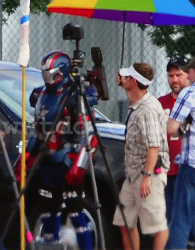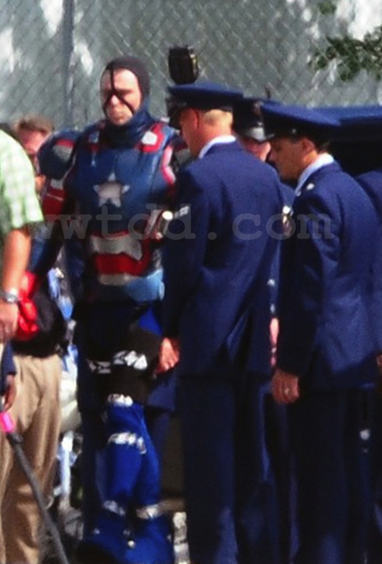 SuperHeroHype vient de confirmer par l’image que l’armure rouge blanche et bleue d’Iron Patriot serait bien présente dans le Iron Man 3 de Shane Black. Ce que l’on ne sait pas c’est qui sera dedans. L’armure a fait son apparition en 2009 dans le "Dark Avengers #1". Suivant les événement du crossover de "Secret Invasion", Norman Osborn est vu comme un héros national et dirige le HAMMER qui sera le successeur du SHIELD. Volant la technologie à Stark Industries, Osborn a créé cette armure qui est un hommage au Captain America disparu. Le personnage étant la propriété de Sony (c’est un méchant du monde de Spider-Man), il est plus que probable que ce soit un autre personnage qui porte l’armure. Sur les photos, on peut voir que c’est James Badge Dale, qui joue Eric Savin dans le film, qui porte l’armure. L’acteur était annoncé pour jouer Coldbood mais on ne sait pas si l’acteur portera les 2 costumes ou si les deux personnages seront mélangés en un seul.