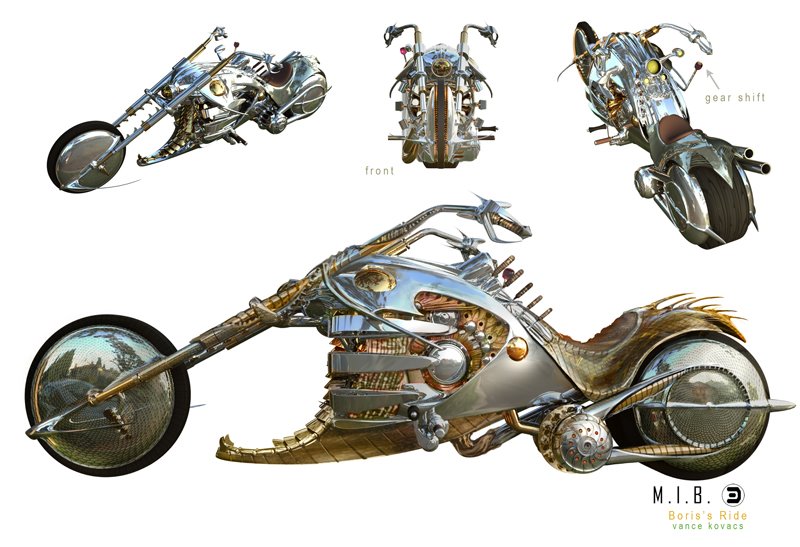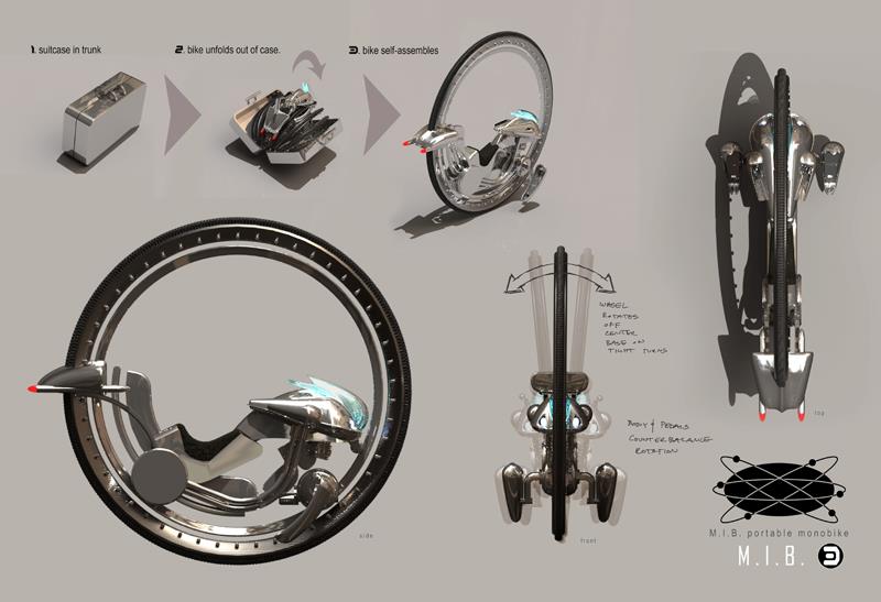 Vance Kovacs a posté des concepts art pour deux des véhicules présentés dans Men In Black 3. Dans l’une des illustrations vous pouvez voir que le monowheel devait à l’origine se déplier à partir d’une valise.