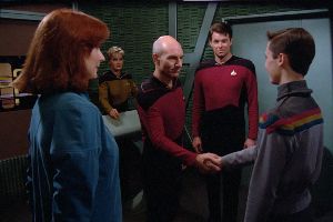 À la tête du vaisseau spatial, un Français, le capitaine Jean-Luc Picard. Autour de lui, l’Officier en second William Riker amateur de trombone, de poker et de femmes, Worf le chef de la sécurité, unique Klingon à bord de l’Enterprise, Data, un androïde, le Dr. Beverly Crusher, médecin, et Deanna Troi, une extraterrestre télépathe...