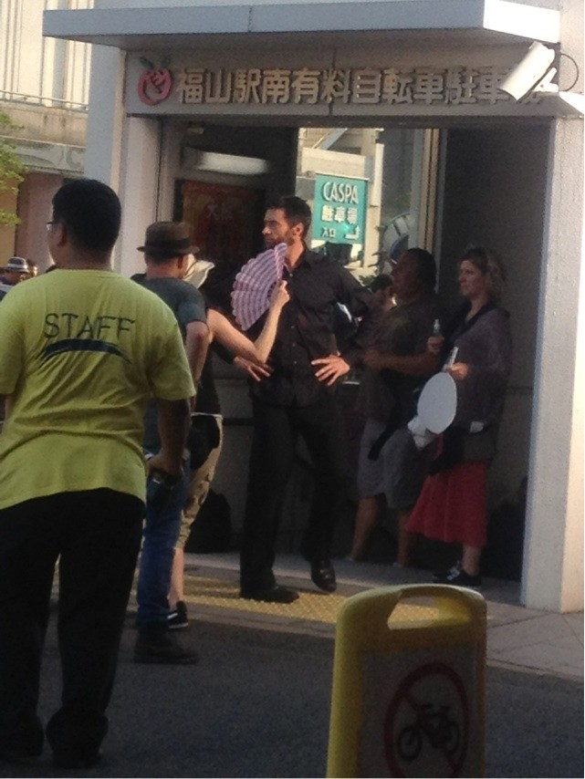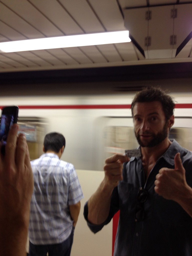 La semaine dernière, James Mangold (3:10 pour Yuma) indiquait que la production de The Wolverine se rendait au Japon pour la seconde partie de leur tournage. Depuis leur arrivée au pays du soleil levant, les photos commencent à affluer et certaines montrent déjà Hugh Jackman arborant sa coupe de Wolverine ou encore la jeune et jolie Rila Fukushima qui joue Yukio, une assassin chargée de tuer notre héros mais qui va finir par tomber sous son charme. Ici on peut voir Jackman au stade, au restaurant, dans le métro mais aussi une belle photo d’un lever de soleil sur le mont Fuji. Et enfin Wolvie avec Tao Okamoto, qui interprète Mariko Yashida la demi sœur de Silver Samurai.