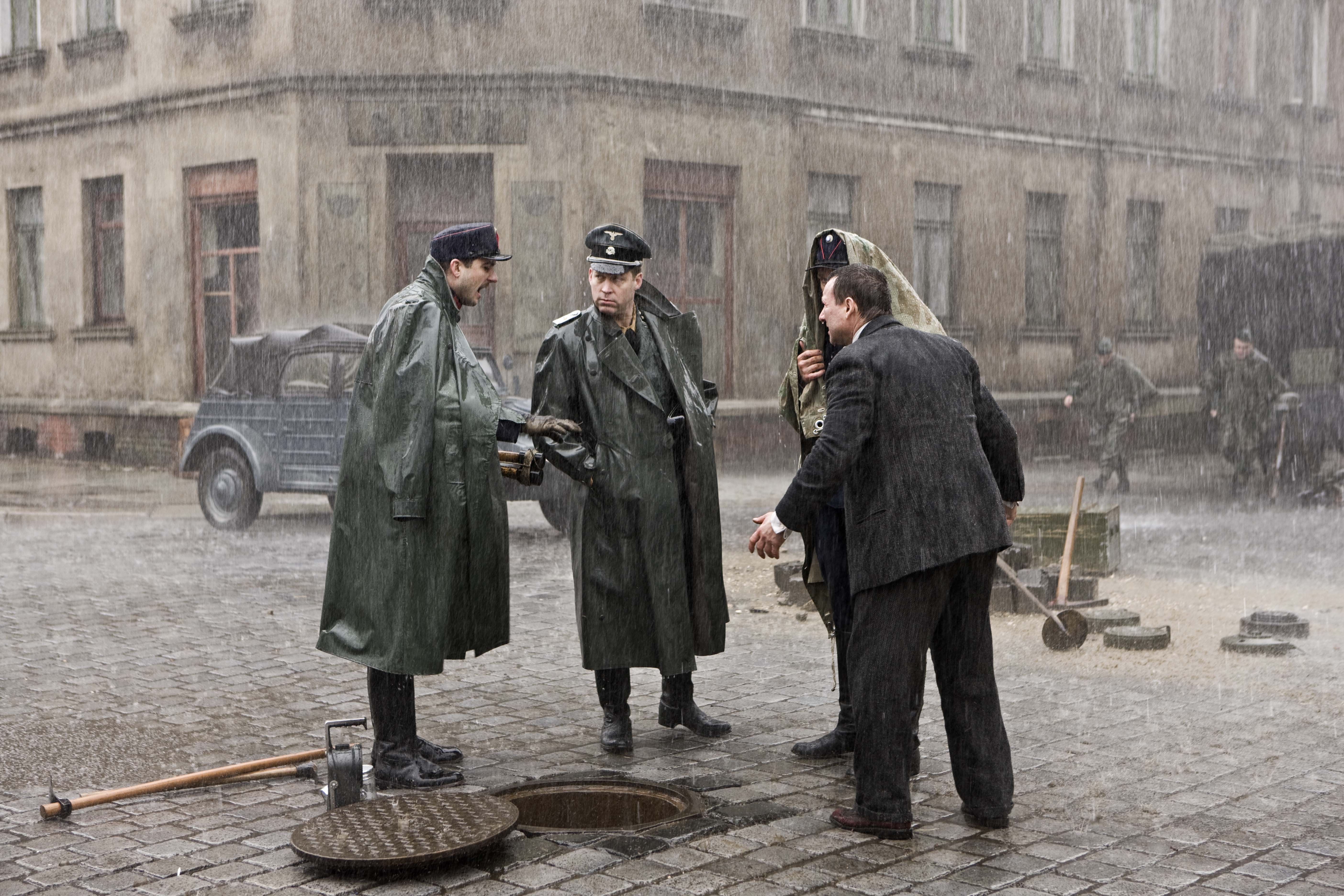 Sous la ville est un film hybride, pas totalement un film de guerre ni totalement un film sur l’Holocauste. Il s’intéresse à ce microcosme formé par ses onze juifs terrés dans les égouts de Lvov, dépendant d’un employé municipal pour survivre.