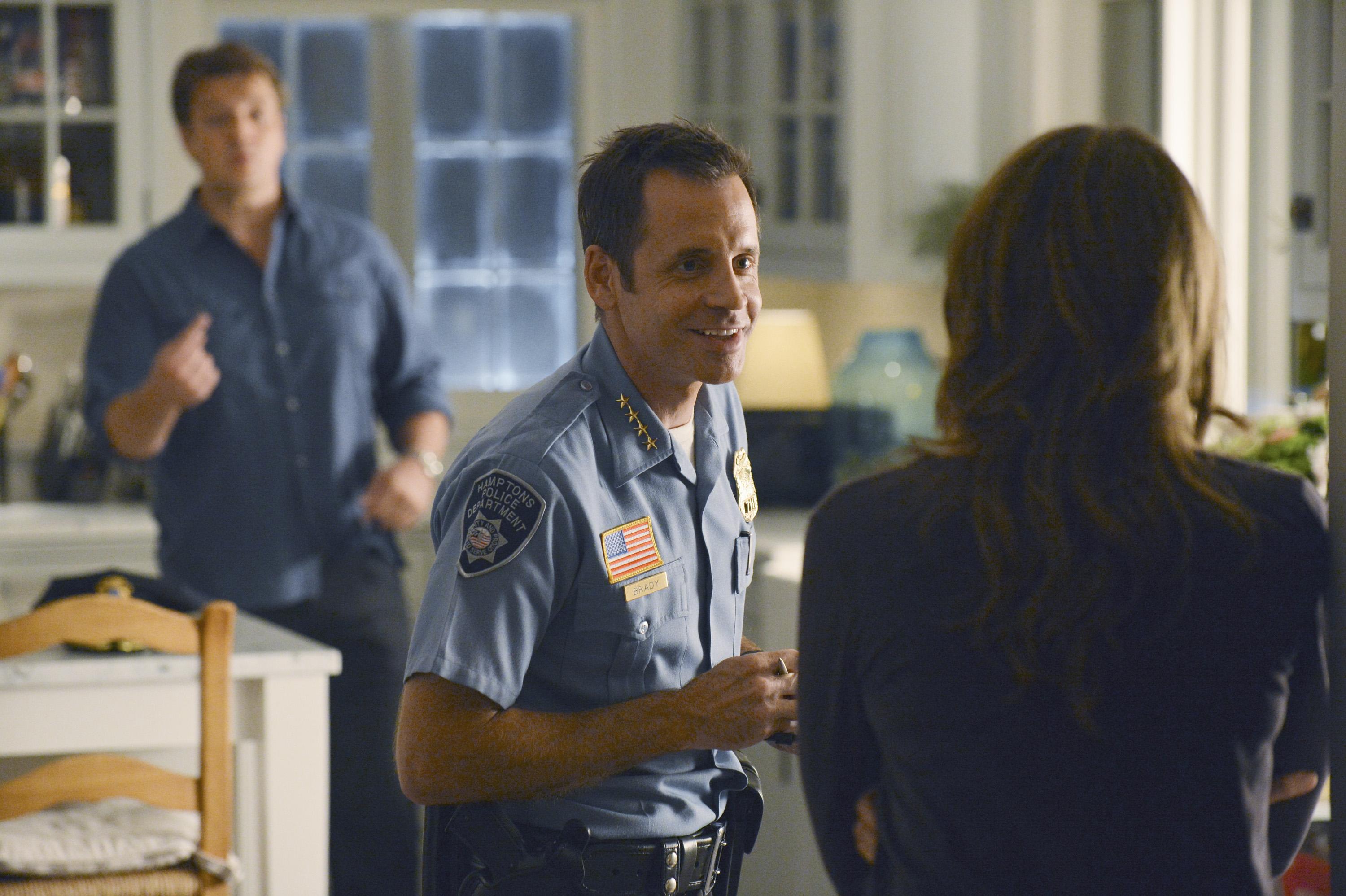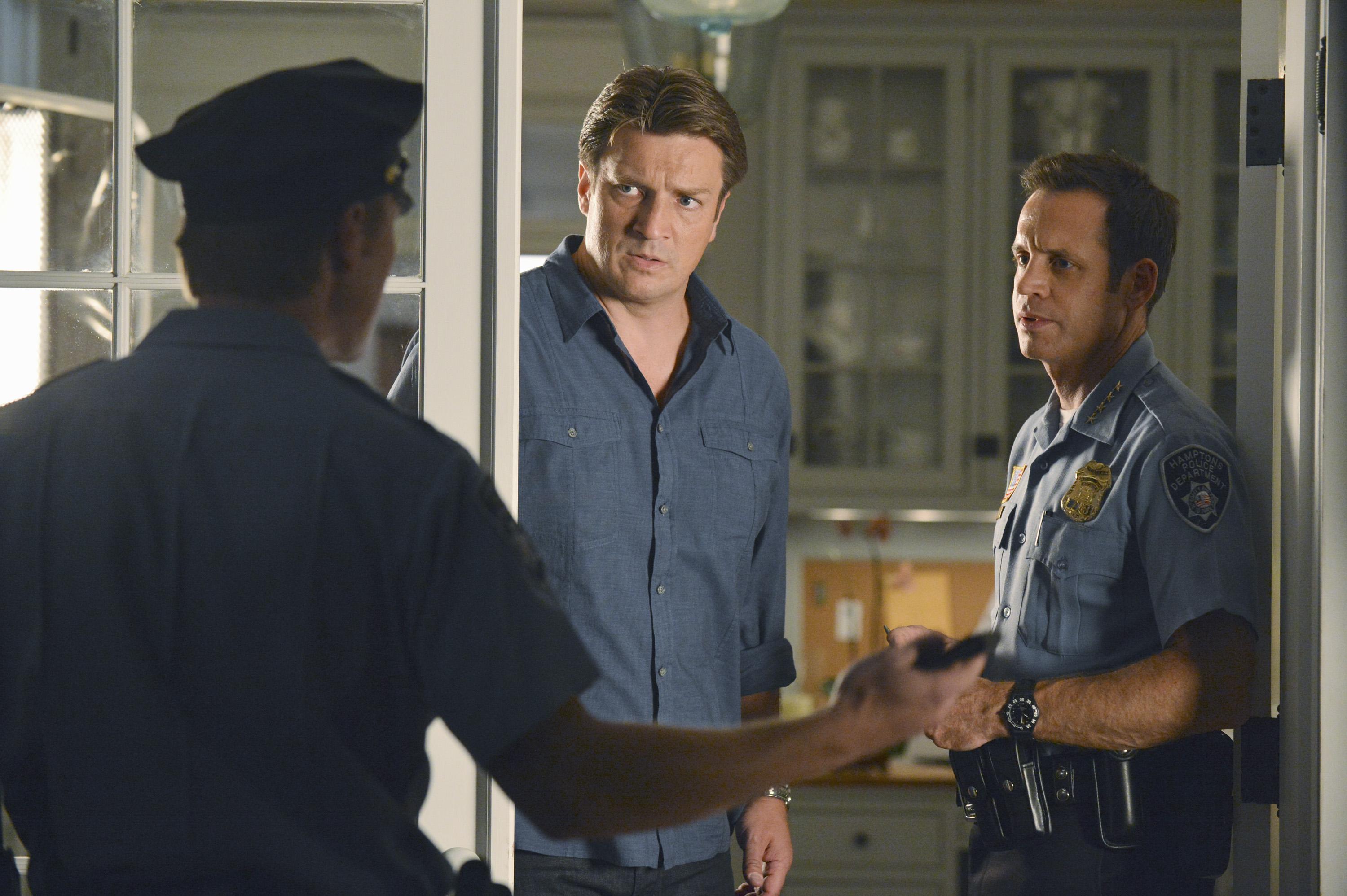 Dans l’épisode 5x04 Murder He Wrote, les plans de Castle et Beckett d’un romantique week-end dans les Hamptons sont interrompues quand un homme mourant débarque dans le jardin et s’effondre dans la piscine. Incapables d’échapper à l’envie d’enquêter, ils aident le bien intentionné, mais très inexpérimenté shérif de la petite ville, pour trouver le tueur.