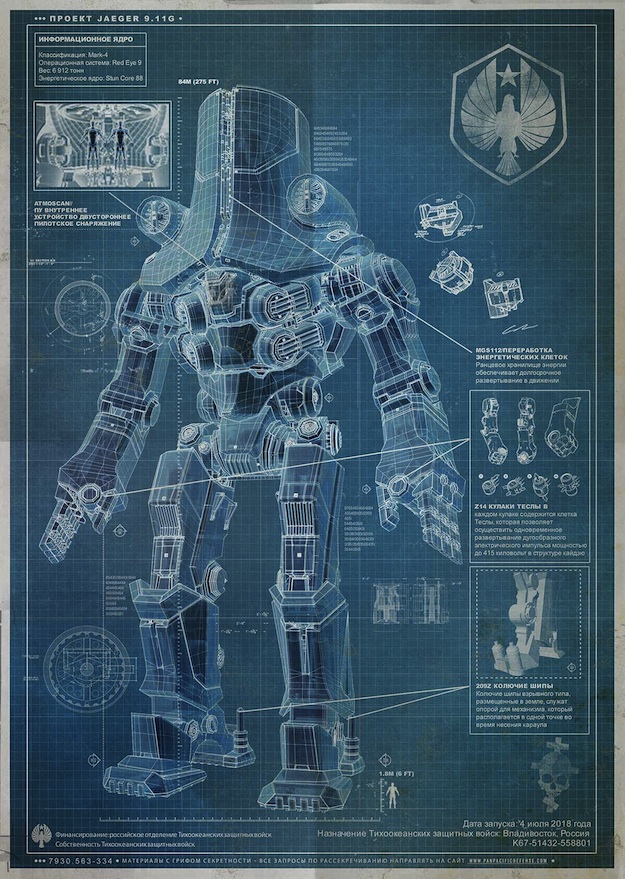 La campagne de marketing viral pour Pacific Rim, le nouveau film de Guillermo del Toro vient de débuter officiellement. Pour démarrer, nous vous proposons 4 magnifiques plans détaillés des robots du film, un document top secret et deux vidéos... Régalez-vous bien. Et pour prolonger l’expérience virale, vous pouvez aller visiter le site de la Pan Pacific Defense Corps.
