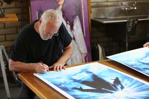« Mon dieu, j’essaie de me mettre en retraite, » plaisante Struzan. « Vous savez, j’ai passé 35 ans de ma vie à peindre du Star Wars. Je devais déjà peindre Star Wars bien avant que la plupart d’entre vous ne soyez nés. Mais je crois que la chance est toujours là, il n’y a pas d’intention. C’est aussi vrai que j’aurais aimé prendre un ou deux jours de congés de temps en temps. Mais à la place je travaille les week-end et les nuits. Si l’opportunité se présente, ce sera une tentation. Mais ça devra être une véritable tentation qui me séparera de ma femme, des mes petits-enfants et de ma famille. Loin des arbres verts et du ciel bleu pour changer un peu plutôt que de rester enfermé dans le studio. Mais vous savez il ne faut jamais dire jamais. Tout est possible. »