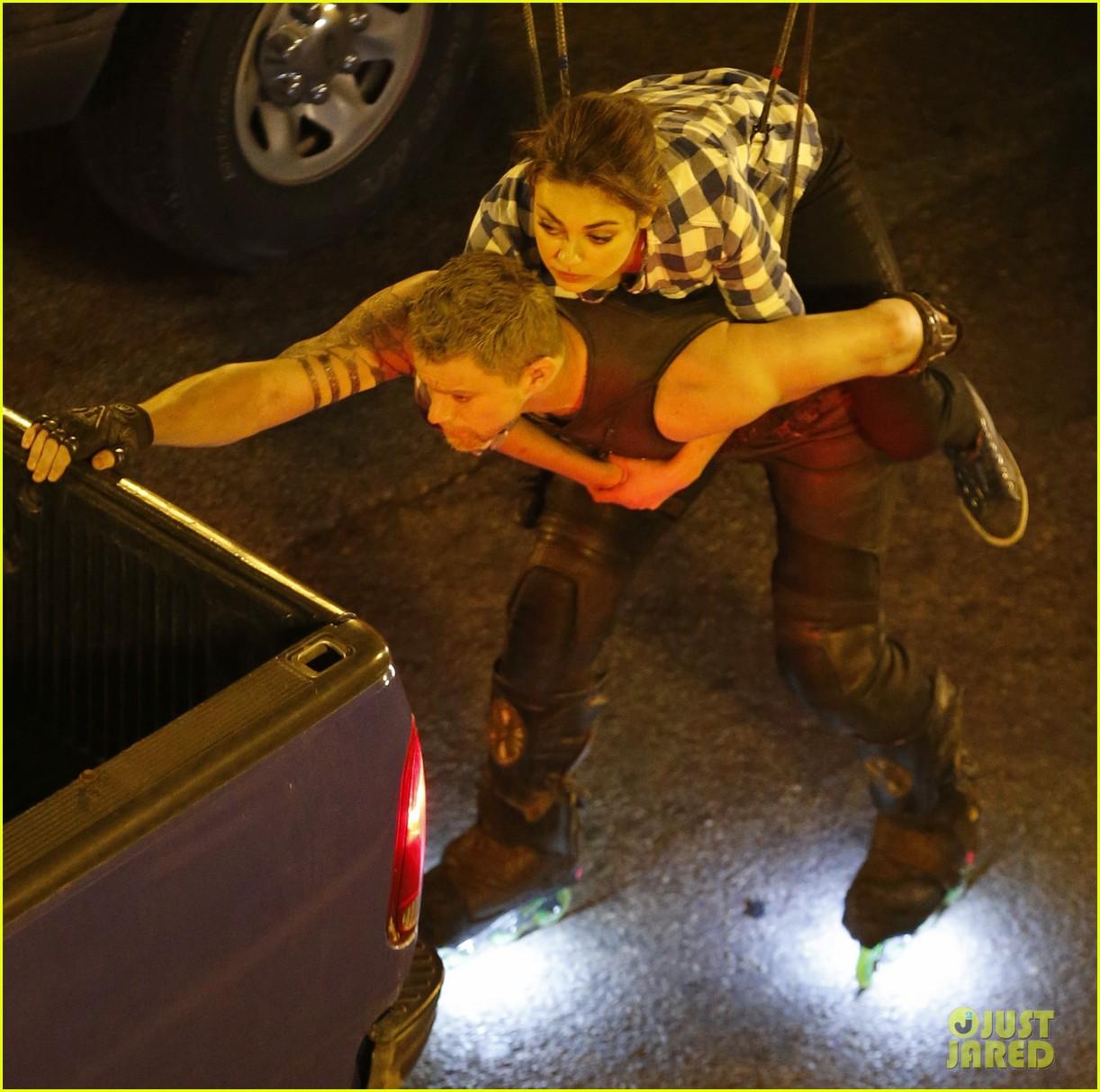 De nouvelles photos de tournage ont trouvé leur chemin vers internet et on y voit les deux acteurs principaux en pleine cascade... Mila à dos de Channing à rollers accroché à une camionnette....