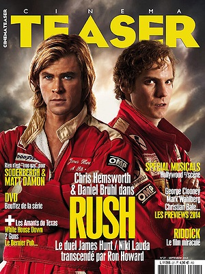 Nous vous avons gâtés en consacrant notre couverture à l’événement de la rentrée : RUSH, l’histoire de la rivalité entre James Hunt et Niki Lauda qui agita pendant des années le monde de la Formule 1. Et en attendant sa sortie le 25 septembre prochain, d’autres films vous aideront à passer le cap de la reprise en douceur. Cinemateaser vous offre le meilleur du cinéma, ce vendredi 30 août en kiosques. Voici le sommaire.