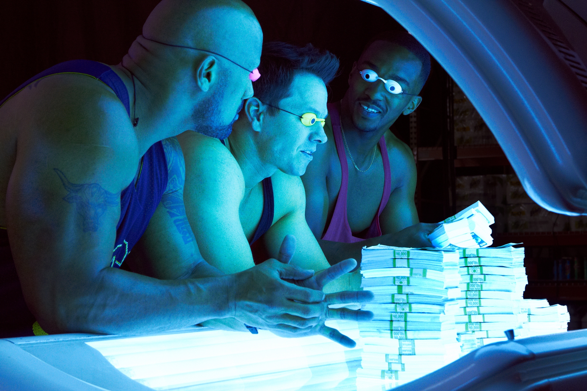 Pour incarner les protagonistes de cette histoire vraie, Bay s’est entouré d’un casting aux petits oignons. Mark Wahlberg, Dwayne Johnson et Anthony Mackie sont d’une crédibilité redoutable. Jamais l’expression « tout dans le muscle, rien dans le cerveau » n’a été aussi bien interprétée à l’écran. Le reste du casting est à l’avenant avec en point d’orgue le formidable Tony Shalhoub dans un rôle d’otage sublimement destroy. A noter que Bay s’auto-moque de ses choix d’actrices avec deux personnages féminins totalement opposées physiquement mais rassemblée par leur Q.I de mouette.