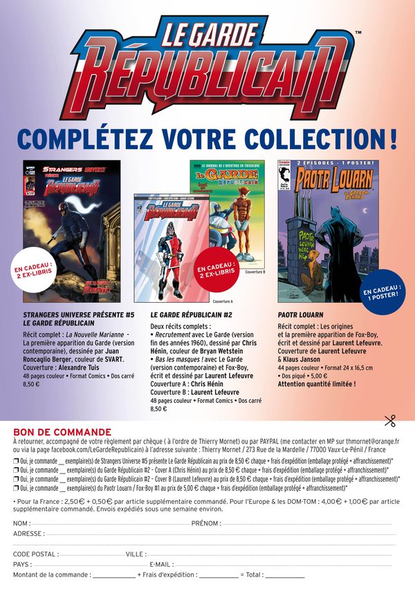 • Éditeur : Sous le label Hexagone Comics. Distribution directe (VPC) à l’adresse du Bon de Commande + Via le site Riviere Blanche