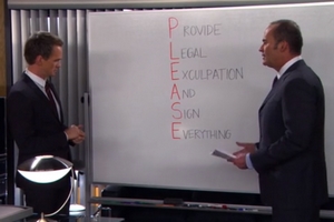 Les deux amis vont s’en donner à cœur joie et Barney va répondre à certaines questions dont il a toujours éludé les réponses : ses conquêtes (ses records, la mère de Ted, Madeleine Albright ...), le prix de ses costumes et surtout son travail.