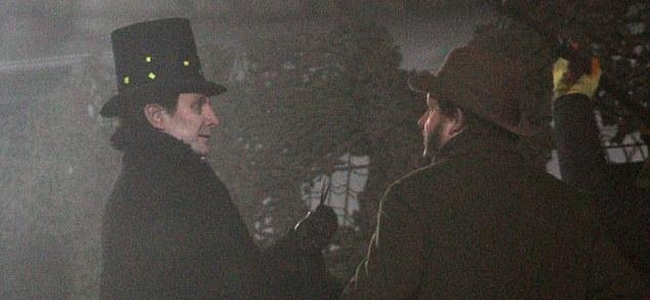 Un cadre victorieux brumeux... Les producteurs semblent avoir recréée Whitechapel aux alentours de l’année 1888... L’homme au chapeau haut de forme (avec des pastilles jaunes, surement pour ajout d’effets spéciaux en post-prod) avec un espèce de bidule oculaire cybernétique serait donc Jack L’éventreur... que Madame Vastra avait indiqué avoir mangé...