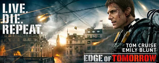 Dans EDGE OF TOMORROW, le personnage campé par Tom Cruise revit les événements de la même journée, indéfiniment, livrant un combat spectaculaire pour sauver la planète.