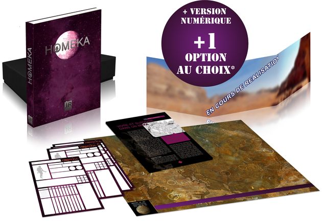 Homeka est le cinquième jeu de rôle complet édité par JdR Editions et est proposé en souscription via la plate-forme Ulule en version classique et collector. De nombreuses options accompagneront toute la campagne et des paliers sont prévus pour améliorer la qualité du livre. Les illustrations sont signées par Nicholas Morineau.