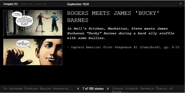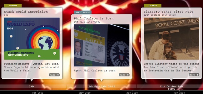 En 188 entrées, leur chronologie commence en 2987 avant Jésus-Christ avec l’attaque des Elfes Noirs pour se terminer le 1er mars 2014 avec Captain America 2 - Le Soldat de l’Hiver. Chaque entrée est documentée avec les "faits" des films mais pas seulement puisque les événements de la série Marvel’s Agents of S.H.I.E.L.D. sont également inclus comme la naissance de Phil Coulson le 8 juillet 1964.