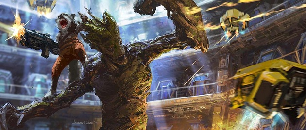 Voici les premiers designs pour Groot créés par l’illustrateur Josh Herman ainsi qu’une scène clés du film par Jackson Sze. Les gardiens de la galaxie seront dans les salles françaises dès demain.