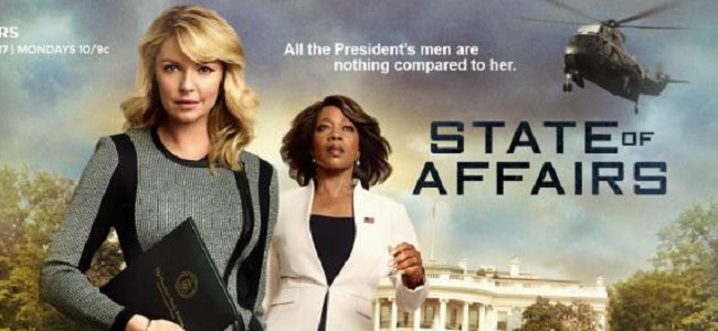Dans State of Affairs, Katherine Heigl incarne Charlie Tucker, une agent de la CIA arrachée du terrain pour briefer de manière quotidienne la Présidente Constance Payton (Alfre Woodard, vue dans True Blood), et assumer la responsabilité de cibler les menaces les plus critiques de l’Amérique tout en menant un style de vie unique qui va de paire avec un tel travail.