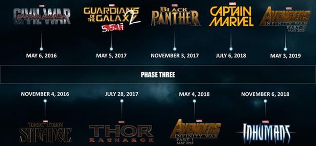 A first look to celebrate our #Marvel fans : the exclusive official Phase 3 timeline of the Marvel Cinematic Universe ! pic.twitter.com/dkHVnL0EaI