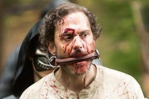 Mais le moment fort de cet épisode restera incontestablement la performance incroyable de Silas Weir Mitchell alias Monroe. Salement amoché, le visage couvert de sang (par contre, quel gâchis le faux raccord lorsque Monroe est « béni » de sang par l’un des membres du tribunal), le bludbad n’a pas dit son dernier mot et nous délivre un monologue particulièrement émouvant alors qu’il est sur le point de subir l’odieuse sentence. Et Monroe n’est pas le seul à nous avoir ému : Bud (là aussi, mauvais raccord avec le col de son blouson qui fait l’ascenseur en l’espace d’une minute), l’ami castor de Nick prend également la défense du Grimm mais aussi du Bludbad et ce malgré que les congénères de Monroe soient supérieurs en nombre ! Sacré Bud !