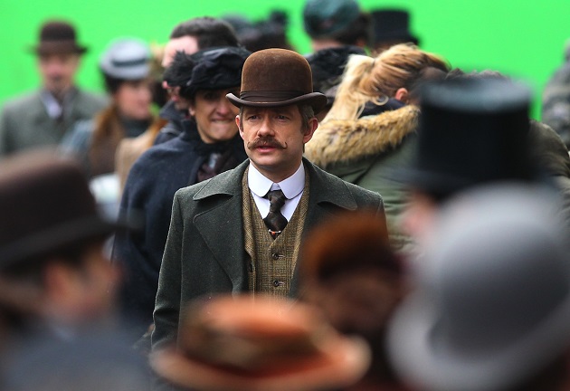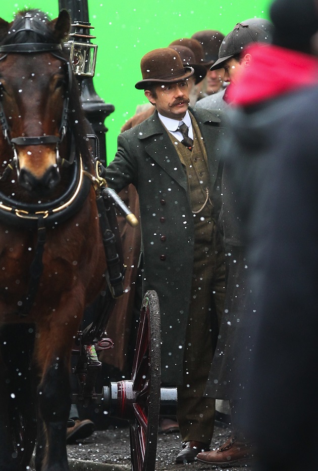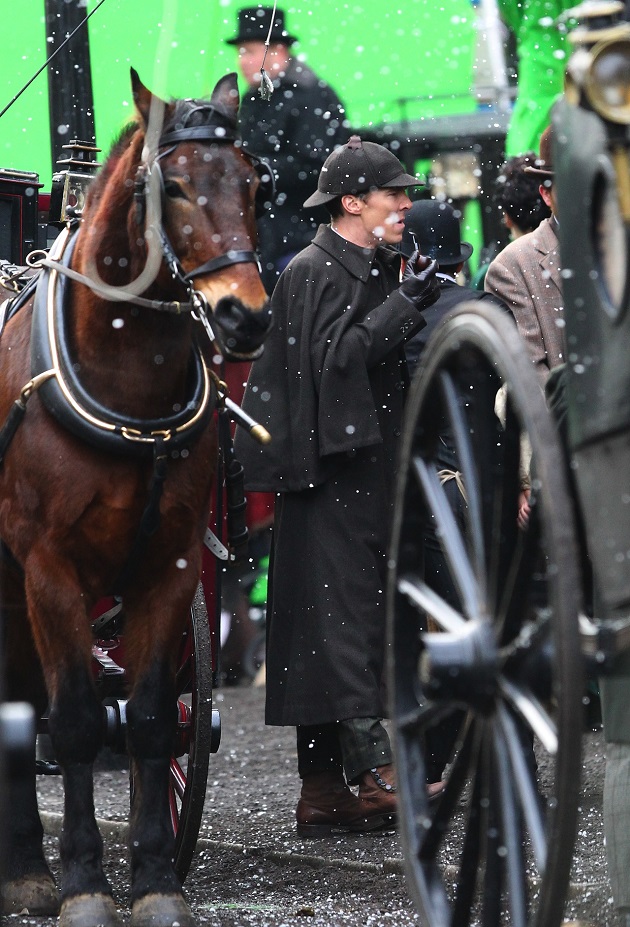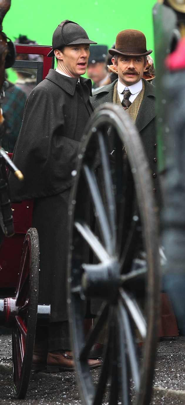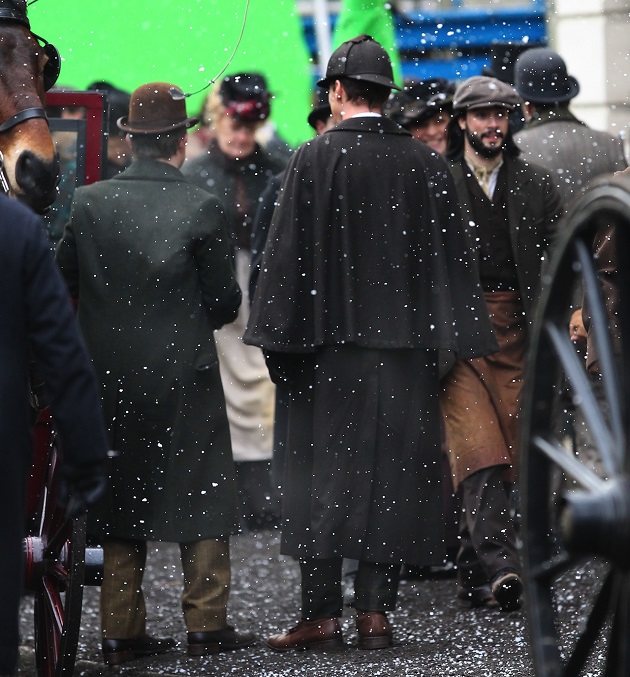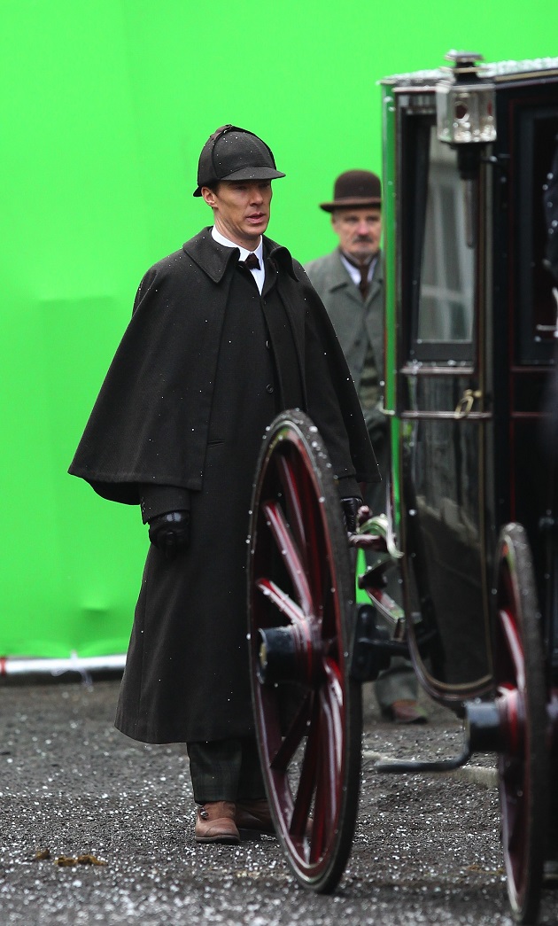 Ces images parlent peu, enfin si, on peut imaginer que l’épisode Sherlock Special, c’est son nom de code pour l’instant, se déroulerait tout du moins en partie à l’époque victorienne et Sherlock y retrouve deux de ses célèbres attributs : la pipe et le deerstalker.