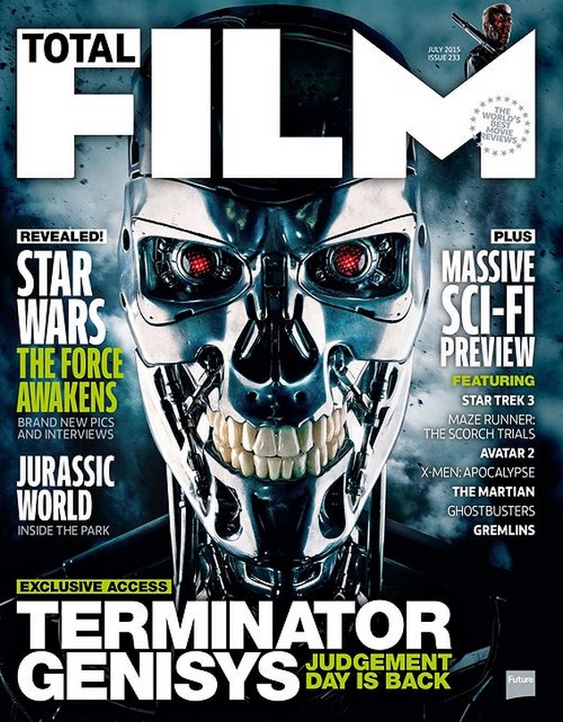 Terminator - Genisys : Un T-800 tout sourire en couverture de Total Film