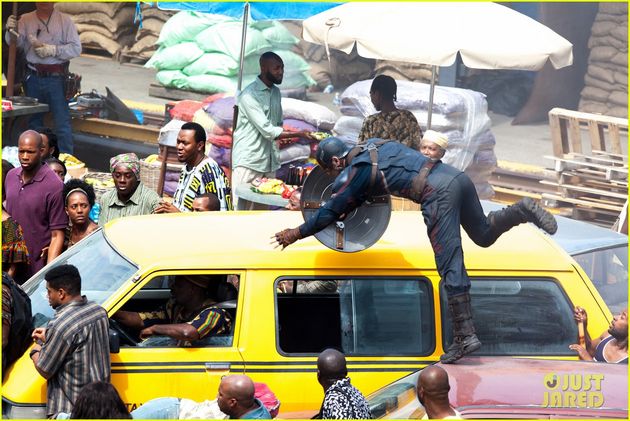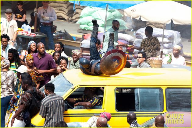La production de Captain America : Civil War a débuté à Atlanta il y a maintenant quelques jours et nous avons aujourd’hui un premier regard sur le tournage avec des photos des décors installés dans les rues de la ville américaine qui ressemblent à une mise en scène pour des séquences se déroulant au Wakanda (et à Londres) où les héros Captain America, La Veuve Noire, Le Faucon, La Sorcière Rouge ainsi que le super-vilain Crossbonnes sont actuellement sur place. Et la menace semble planer sur les terres du Roi T’Challa, est-ce que les problèmes au Wakanda seront à l’origine du SuperHero Register Act ?