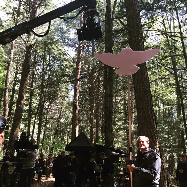 Faisant suite à la mystérieuse photo montrant un groupe d’hommes en uniforme armés d’arc et de flèches, Bryan Singer est de retour sur Instagram pour une nouvelle photo du tournage de X-Men - Apocalypse. Dans cette nouvelle image, dans la continuité de celle d’hier, Josh McLagen l’assistant réalisateur guide une perche représentant un personnage fictif que Singer décrit comme "l’arrivée guidée d’une chouette mutante."