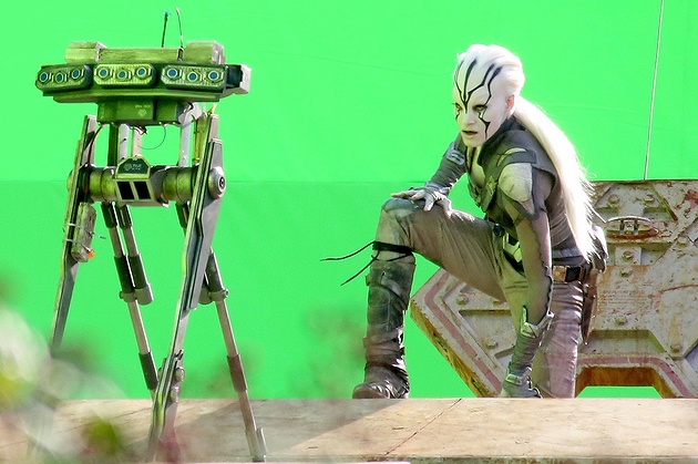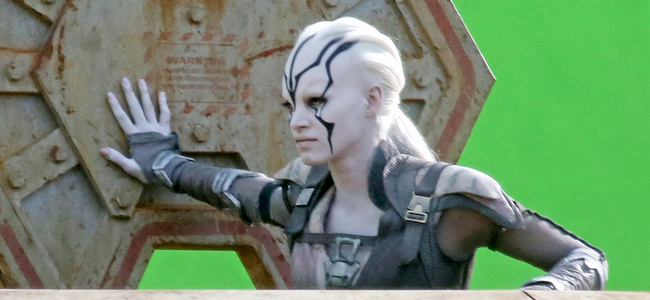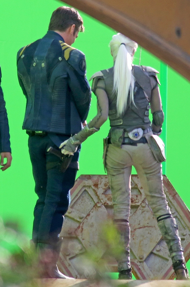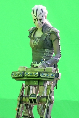 La première chose qui saute aux yeux en dehors de la beauté du personnage de Boutella, sont les nouveaux uniformes de Starfleet pour Kirk et Chekov (Scotty étant toujours en rouge). Avec le cuir, les bottes et les protections des genoux, il semble s’agir là d’un uniforme plus fonctionnel que quoi que ce soit porté à bord. Surement quelque chose pour les missions lointaines. Ensuite, c’est bien évidemment le personnage joué par Boutella qui est décrit comme un rôle majeur. On ne sait pas exactement qui elle joue et son look ne semble pas rappeler une quelconque race déjà vue dans l’univers. Elle semble toutefois faire équipe (de plein gré ou non) avec Kirk et le reste de l’équipage. Ses habits semblent indiquer qu’elle est prête pour le combat. La console qu’elle utilise ne ressemble pas à un équipement Starfleet, ce qui laisse penser qu’ils ne sont pas sur un vaisseau de la fédération.