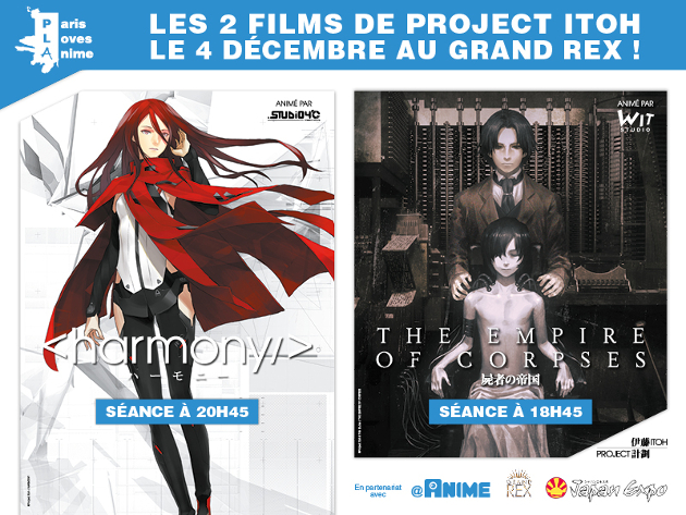 Seules les 30 premières pages de son nouveau roman, The Empire of Corpses ont été écrites lorsqu’il disparait mais son travail a été repris par son collègue Toh EnJoe. Project Itoh est l’adaptation en longs-métrages d’animation de ces trois œuvres. Paris Loves Anime devait proposer les projections de ces 3 films quasiment en simultanée avec leur sortie au Japon, cependant suite à l’annonce de faillite du Studio manglobe, la production du film Genocidal Organ a du être stoppée. La production a repris depuis peu et le film devrait sortir en salles prochainement. »