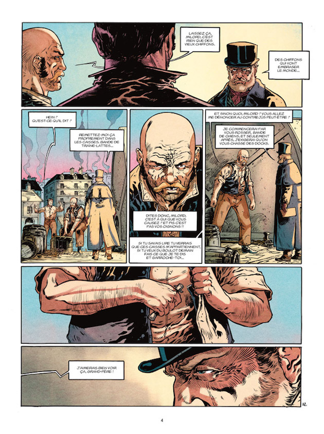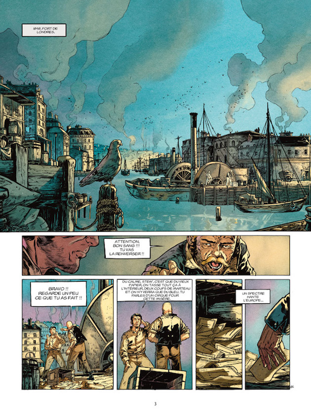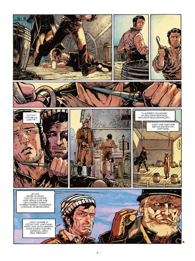 Concept d’histoire dans l’Histoire, ce 9ème tome de la collection L’Homme de l’année reprend cette idée de personnages influençants l’Histoire sans y laisser véritablement leurs traces. Comme indiqué en toute fin de volume, les faits étant impossible à vérifier, une grande partie de l’histoire est romancée mais prend le principe de ce corsaire qui aurait financé la toute première édition du Manifeste du Parti Communiste et qui aurait permis aussi à Karl Marx de quitter Paris pour rejoindre Londres. Le côté véritablement intéressant de cette histoire est le cheminement de Lafitte que l’on peut suivre grâce à d’ingénieux flashbacks. Les époques proposées de ces 45 ans de tranches de vies sont souvent des moments historiques, ce qui rend la BD encore plus vraie et plus intéressante. On peut y voir la rencontre avec Jim Bowie (personnage important de l’histoire des Etats-Unis), le passage dans l’archipel de Barataria…