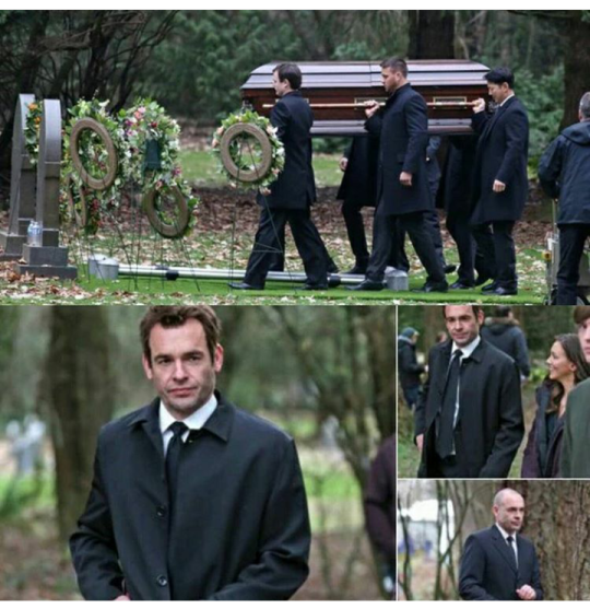 Sur les images ci-dessous on aperçoit son interprète Paul Blackthorne à la fois sans et avec cheveux (pour les besoins de flashbacks ?) mais également l’actrice Madison McLaughlin, qui pourrait jouer le rôle de Laurel enfant, pour des séquences de flashbacks. Ajoutez à cela la présence de l’ex-femme de Quentin Lance, Dinah Lance (Alex Kingston) et vous obtenez l’enterrement de ce cher commissaire de police. Cependant, une ombre au tableau, son actuelle compagne, la mère de Felicity Smoak, n’a pas été aperçue sur le tournage. Absence volontaire ou brouillage de piste, qu’en pensez-vous ?