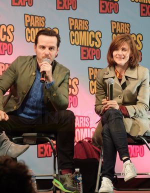 Pour le bonheur des fans de Sherlock, Andrew Scott, le brillant interprète de Moriarty, était présent à Paris Comics Expo 2016 les 16 et 17 avril accompagné de Louise Brealey, la scientifique Molly Hooper dans la série.