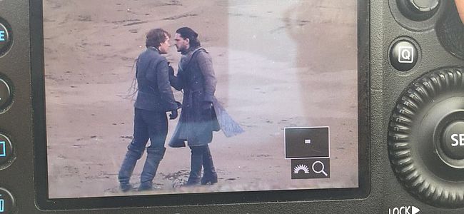 Ce n’était qu’une question de temps, une rencontre très attendue a eu lieu entre deux personnages de Game of Thrones et les télé-objectifs de Just Jared nous le prouve en photos. La saison 7 de la série est en cours de tournage à Bilbao en Espagne. La grlace et le feu se sont enfin rencontrés, voici les photos du tournage de cette scène entre Daenerys Targaryen (Emilia Clarke) et Jon Snow (Kit Harington). Game of Thrones sera de retour sur HBO et sur OCS en France en été 2017.