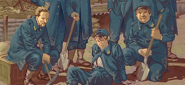 Nouvel épisode de la vie de soldats de nos 8 amis, Le Champ d’honneur porte parfaitement son nom puisqu’il y s’agit bien là d’honneur. Honneur sur le champ de bataille, honneur dans leurs vies d’Hommes pour Denis qui se découvre cocu, Jules dessiné nu et montré aux yeux de tous et Maurice dont on dévoile des tendances homosexuelles, mais aussi honneur du meneur d’Hommes qu’est Armand qui refuse de mener ses hommes à l’abattoir et qui préfèrera se sacrifier pour eux. Le récit montre une fois de plus les atrocités et les absurdités de la guerre, de ceux qui la font loin du front mais c’est l’état d’esprit des 8 amis qui est scruté ici. Les tensions liés à leurs conditions montent d’un cran et les antagonismes se révèlent, les rancœurs et les secrets resurgissent.