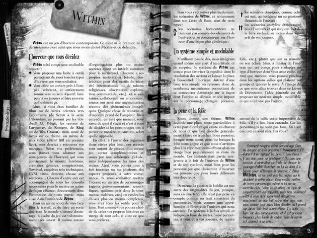 Notez qu’un livret nommé Within - le diable du New Hampshire - avait été édité en 2011. Il était destiné à faire envie aux souscripteurs de la campagne de financement initiale. Cet sorte de kit de découverte est devenu obsolète avec la sortie du livre de base. Son achat n’est pas utile.