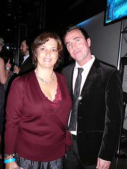 Je retourne socialiser un peu… en gros, je reprends ma position de chien fidèle derrière Bev, car je ne connais pas grand monde, à part les techniciens rencontrés sur le plateau. Joe Mallozzi s’approche de nous avec un caméscope à la main. Il nous filme quelques secondes et s’interrompt pour papoter avec Bev. Elle me présente, je dis à Joe que je suis fan de son travail, il dit que c’est gentil, je lui dis que non, ce n’est pas pour lui faire plaisir, c’est sérieux. Je crois qu’il apprécie, d’ailleurs il accepte de se faire prendre en photo avec moi.