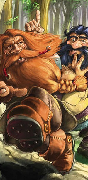 "Deux expéditions de nains s’opposent pour se frayer un chemin dans cette forêt dense à la recherche de mines perdues remplies de richesses.